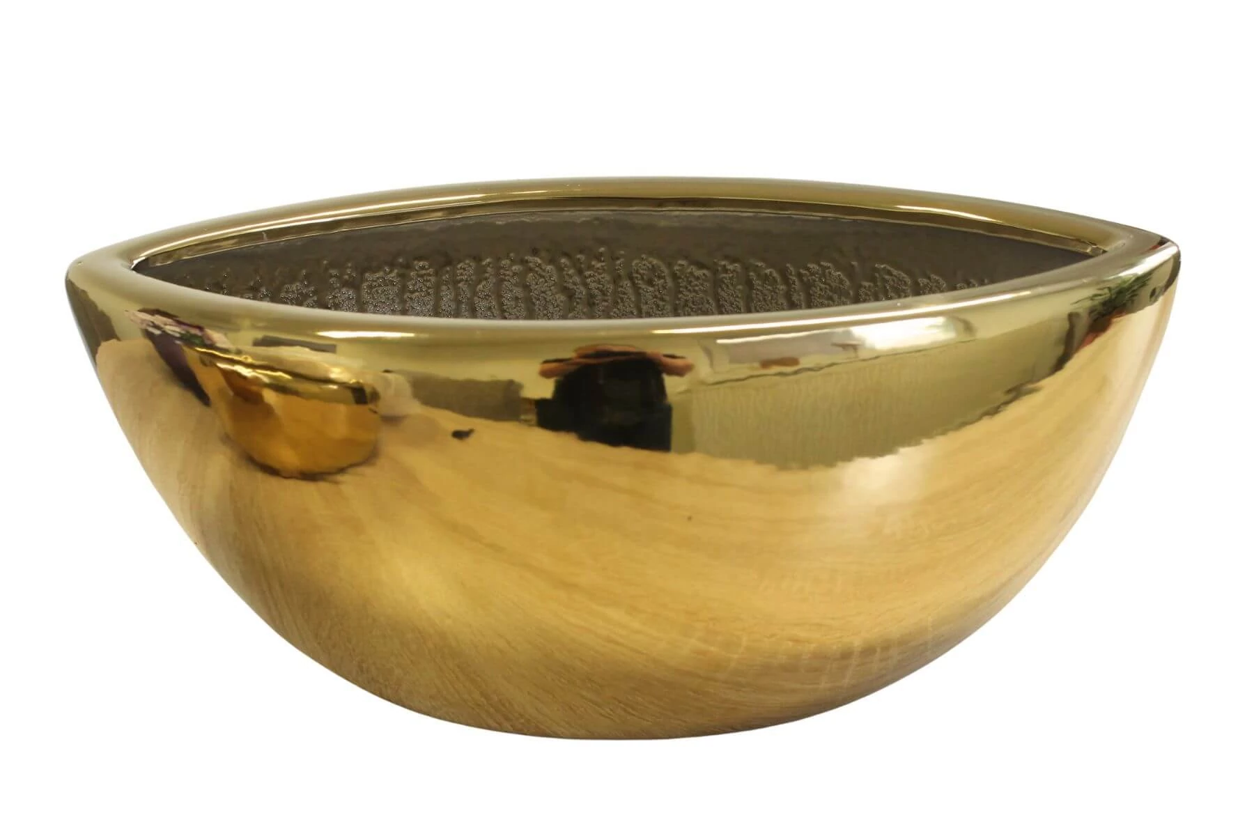 Az arany színű kerámia virágcserép luxust és eleganciát kölcsönöz a belső térnek. Nagyobb növények számára alkalmas, és dekorációként is használható. Alapként is használható virágkompozíciókhoz.