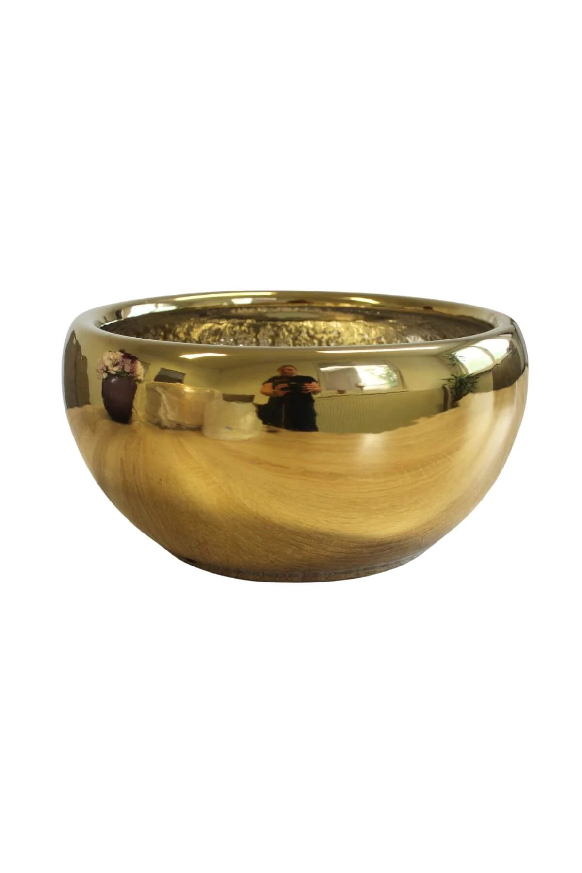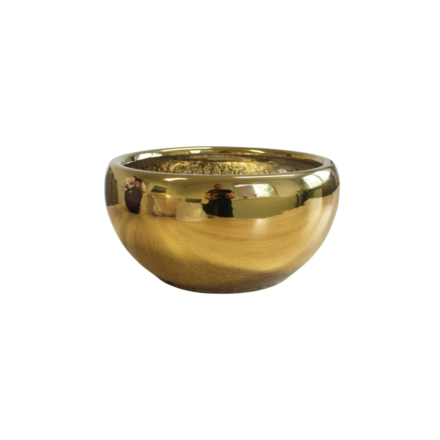 Az arany színű kerámia virágcserép luxusos és elegáns hatást kölcsönöz otthonának. Nagyobb növényekhez is ideális, dekorációként is használható, valamint alapként szolgálhat virágkompozíciókhoz.
