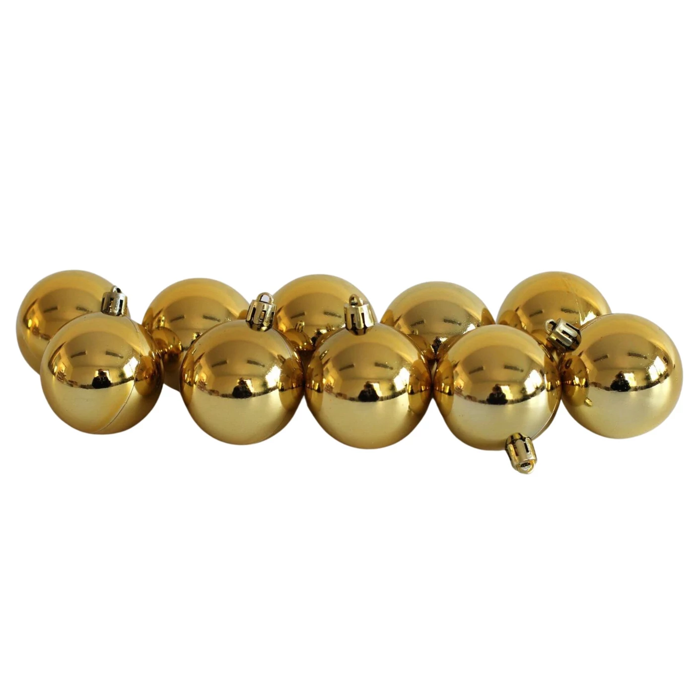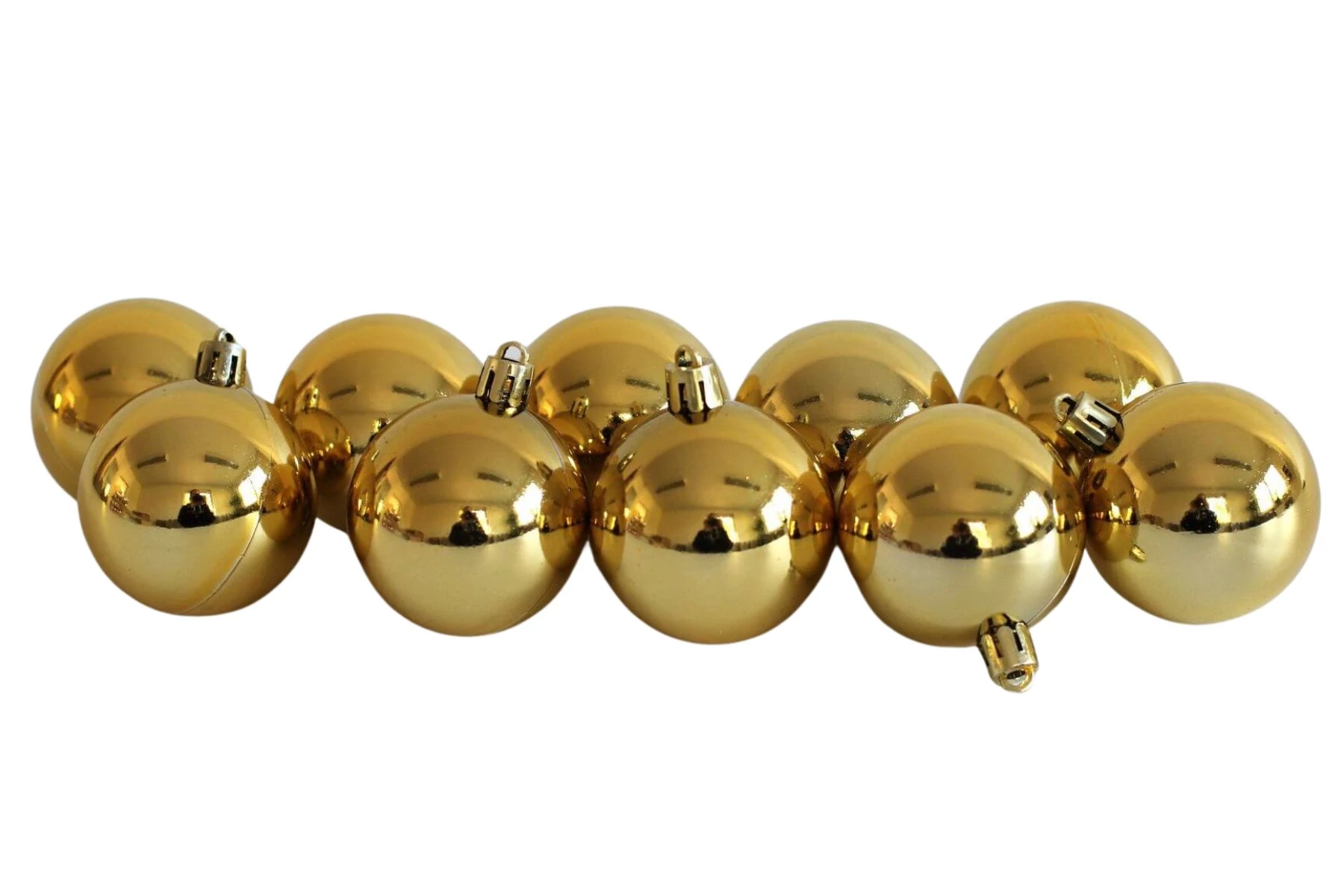 A fényes műanyag gömbök fényes arany színben alkalmasak karácsonyfára akasztásra vagy karácsonyi díszek és koszorúk díszítésére