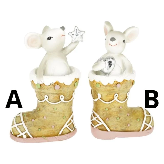 Egér mézeskalács csizmában (7,5 cm x 4,5 cm x12,5 cm)