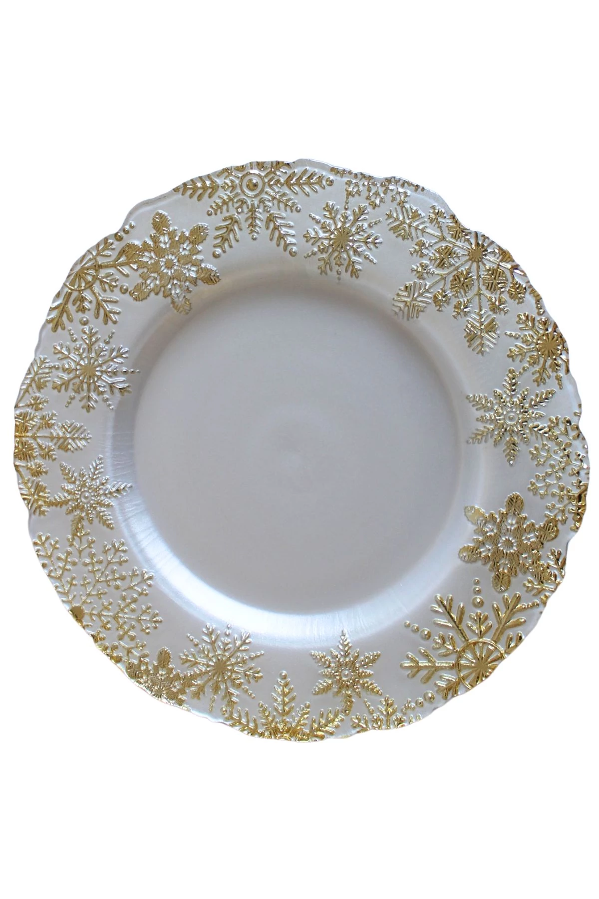 Az elegáns fehér-arany kivitelű üvegtányér alkalmas karácsonyi dekorációként az ünnepi asztalra. Díszítések alapjaként is megállja a helyét.