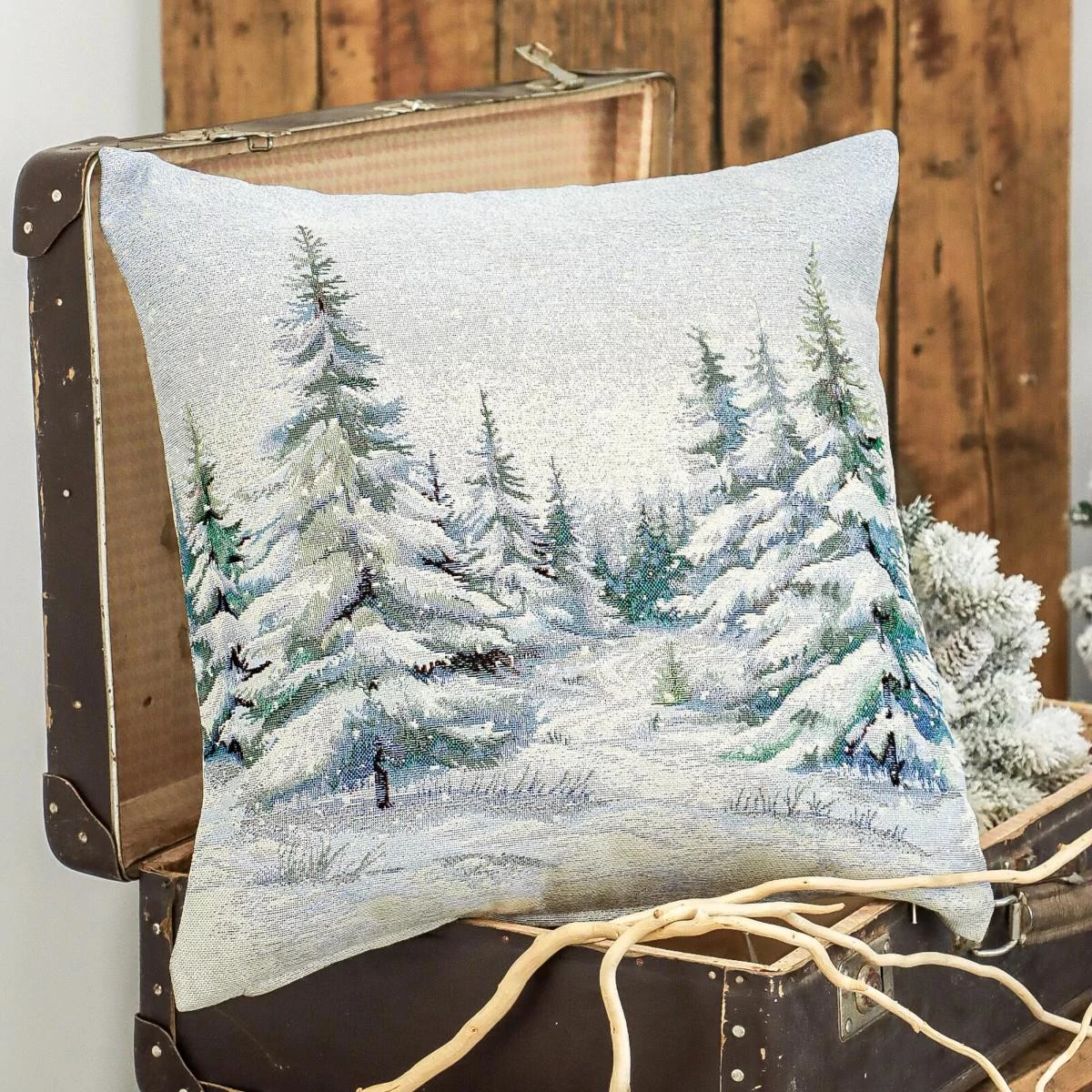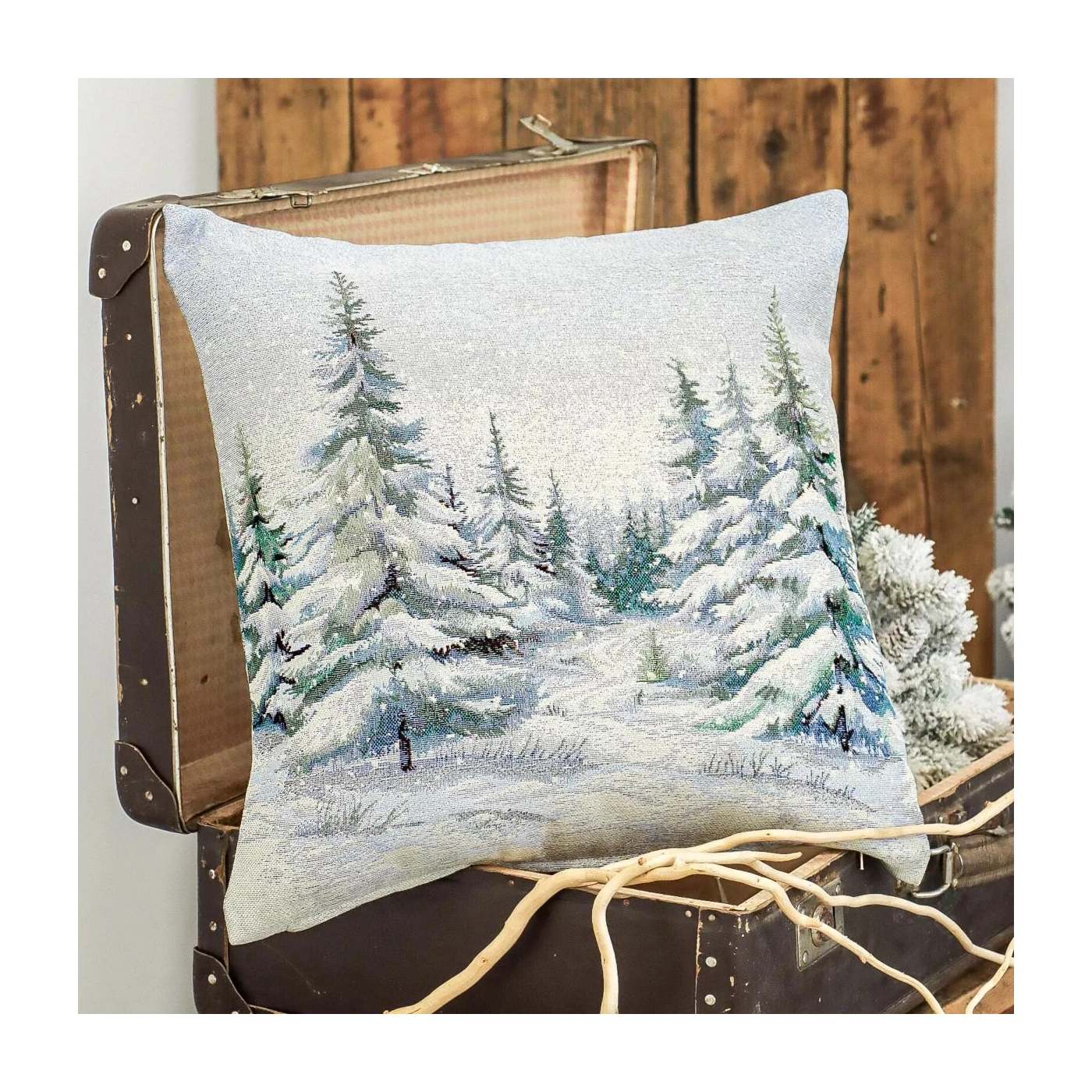 Havas fenyőerdő - Díszpárna huzat (45 cm x 45 cm) | ezüst lurex