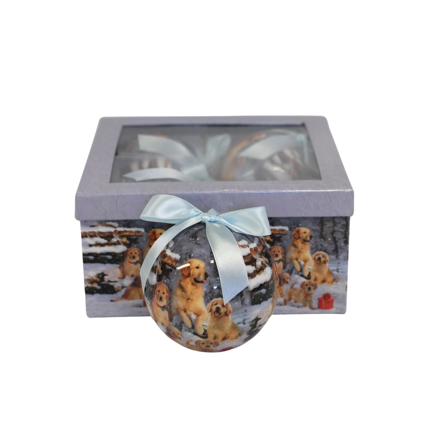 Karácsonyi gömbök kutyákkal (10 cm) 4db
