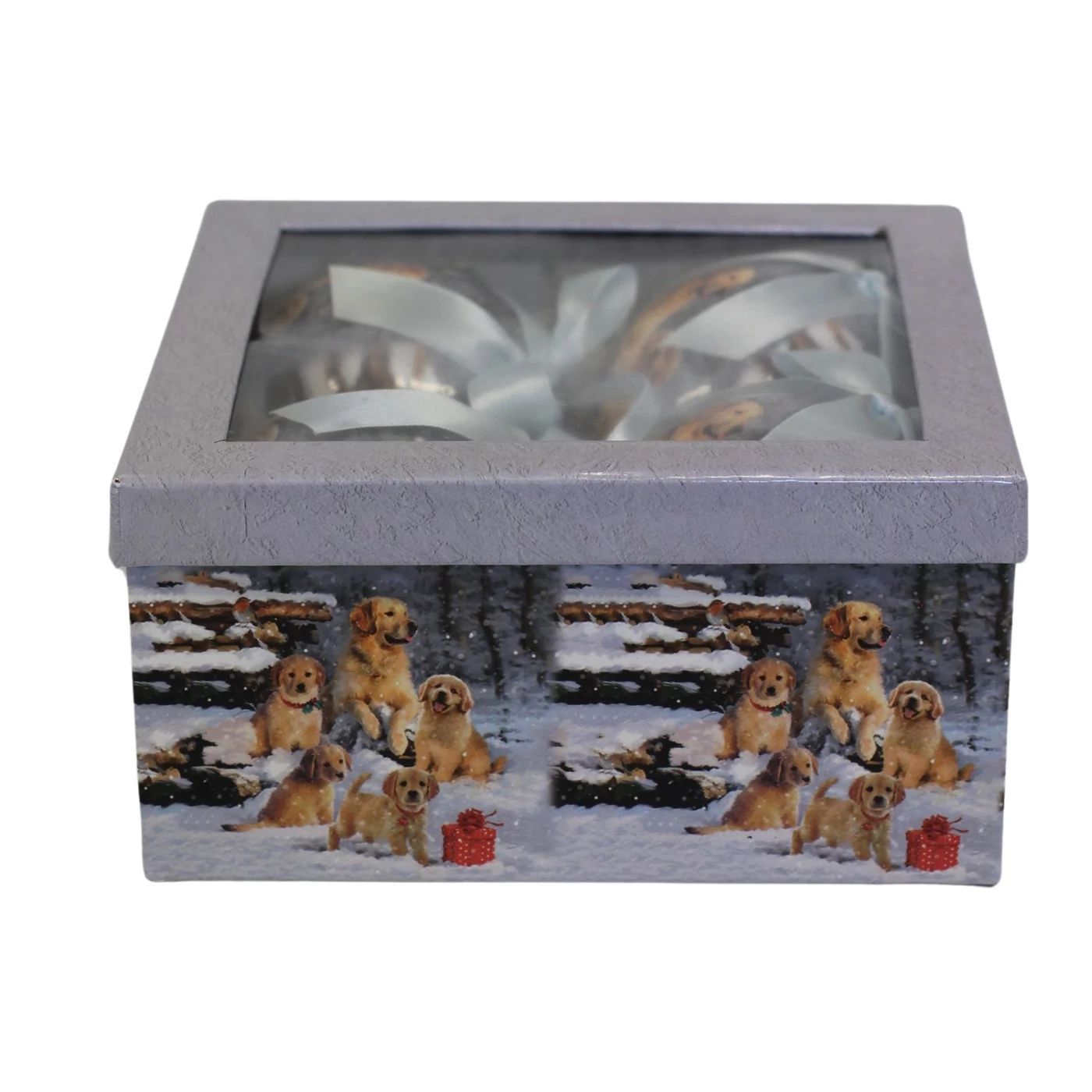 Mesés karácsonyi gömbök gyönyörű díszdobozban. A készlet 4 gömböt tartalmaz, amelyek a díszes masninak köszönhetően könnyen felakaszthatók a fára. A karácsonyi motívum megfelelő karácsonyi hangulatot varázsol. Ajándéknak is alkalmasak