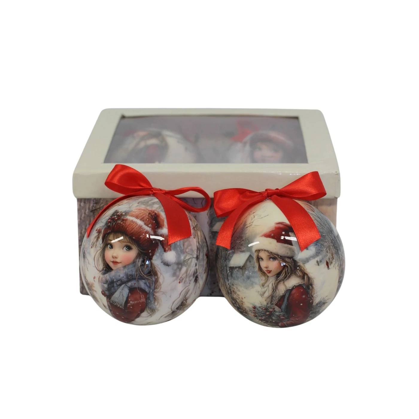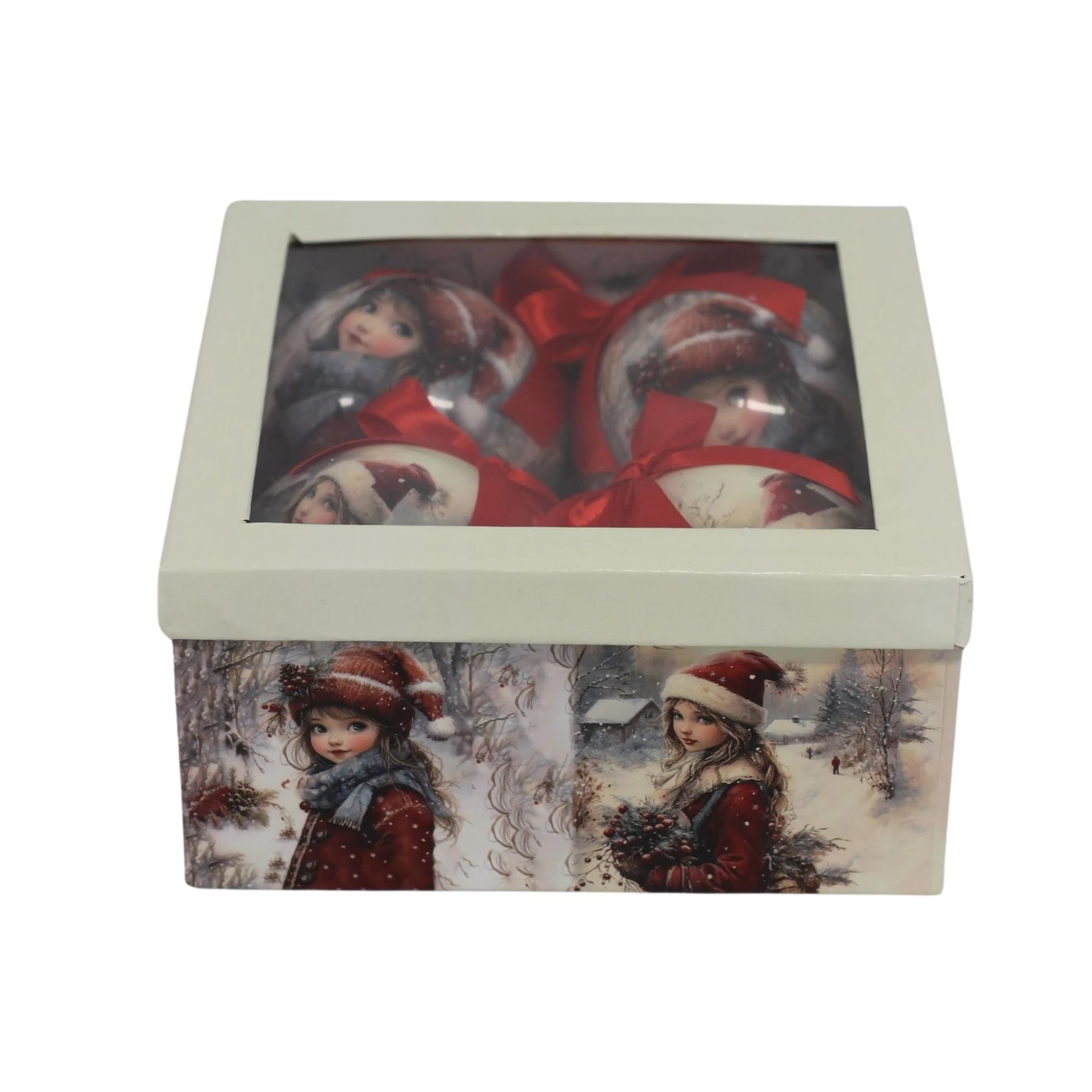 Mesés karácsonyi gömbök gyönyörű díszdobozban. A készlet 4 gömböt tartalmaz, amelyek a díszes masninak köszönhetően könnyen felakaszthatók a fára. A karácsonyi motívum megfelelő karácsonyi hangulatot varázsol. Ajándéknak is alkalmasak