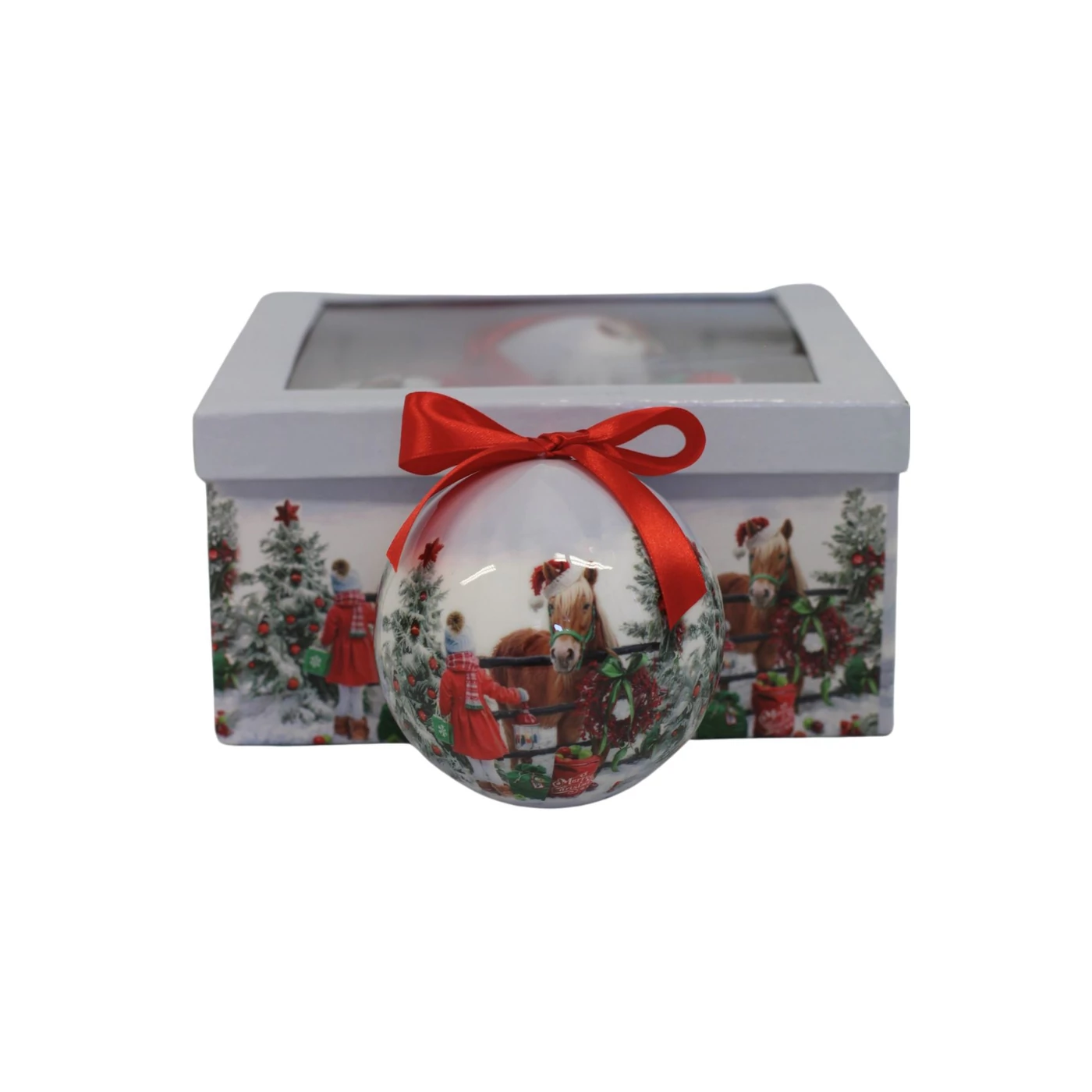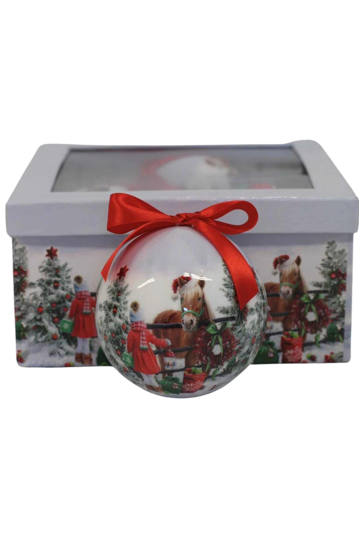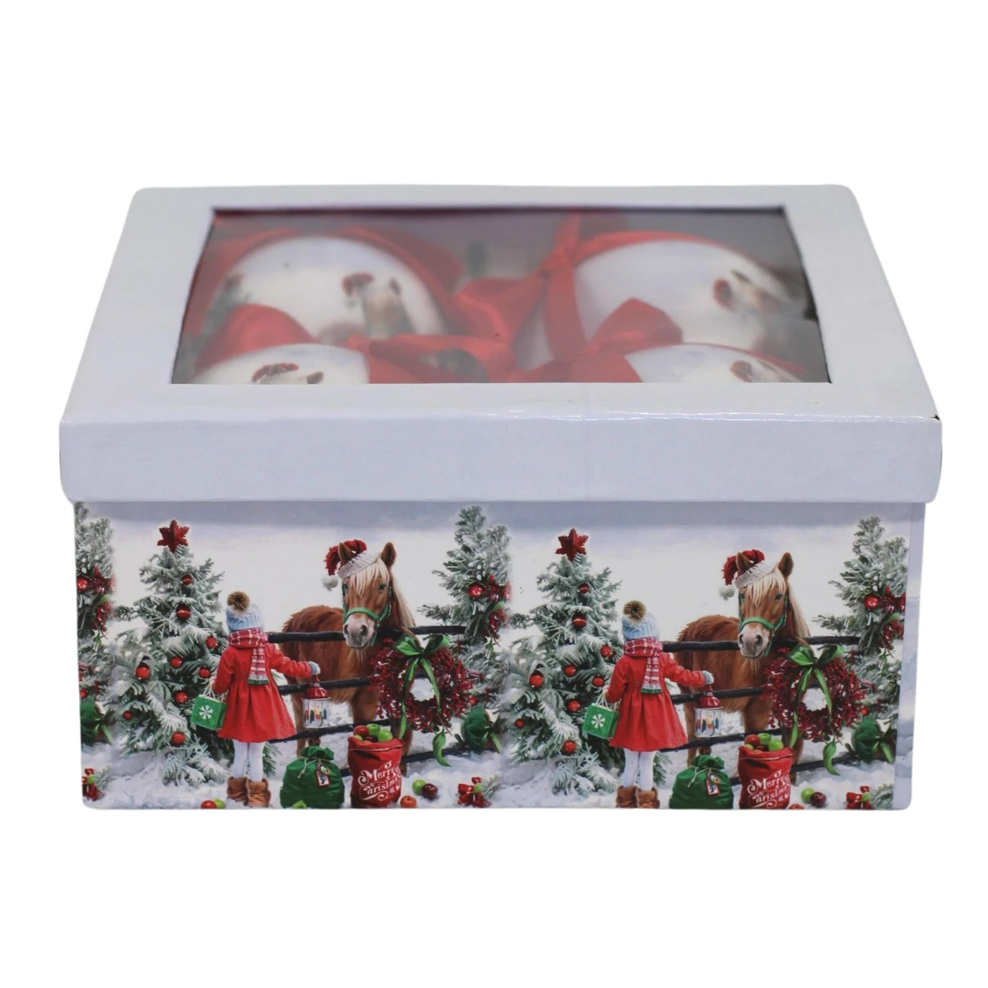Mesés karácsonyi gömbök gyönyörű díszdobozban. A készlet 4 gömböt tartalmaz, amelyek a díszes masninak köszönhetően könnyen felakaszthatók a fára. A karácsonyi motívum megfelelő karácsonyi hangulatot varázsol. Ajándéknak is alkalmasak