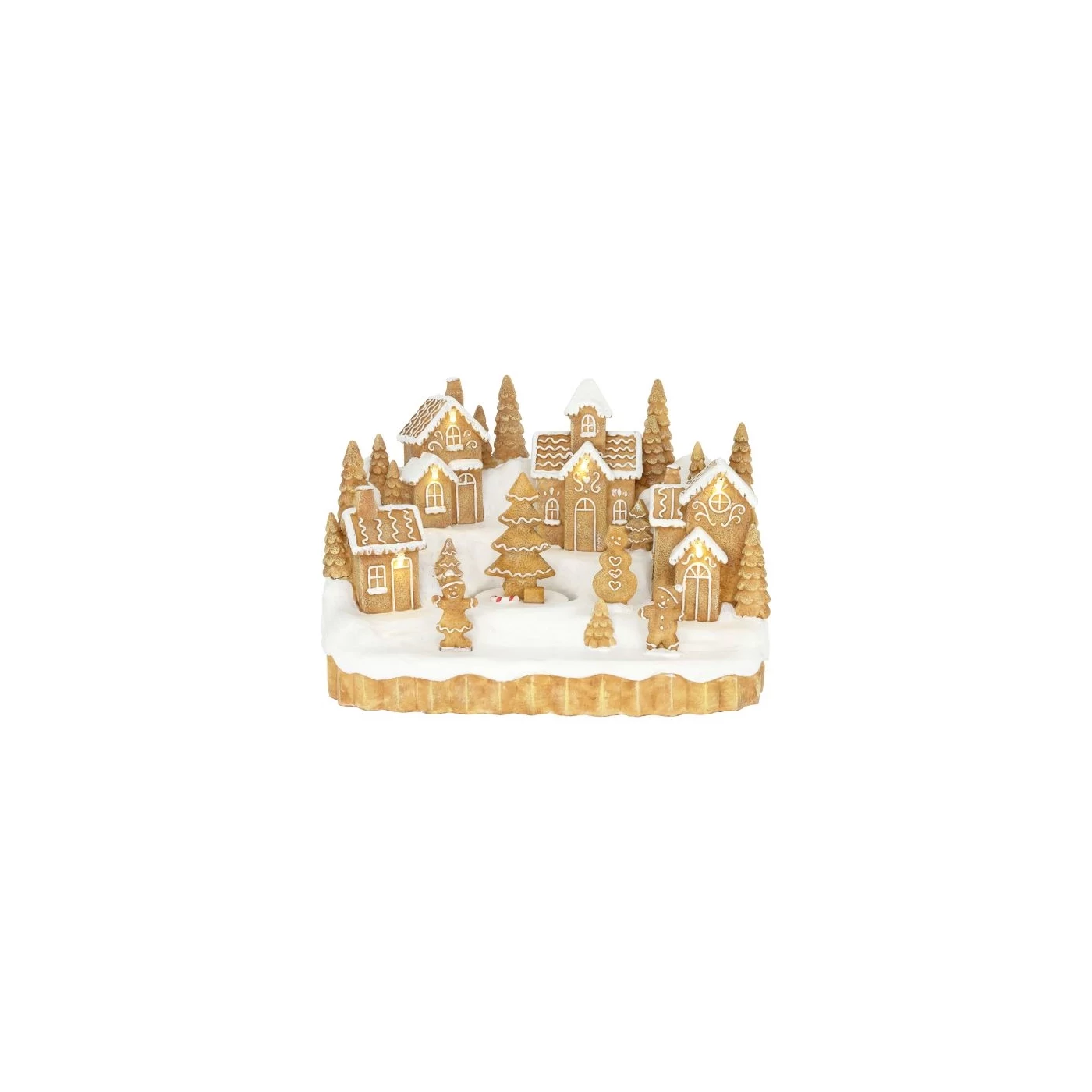 Mézeskalács falu mozgó fenyővel, LED-es (24,5 cm x 16 cm x 16,3 cm)