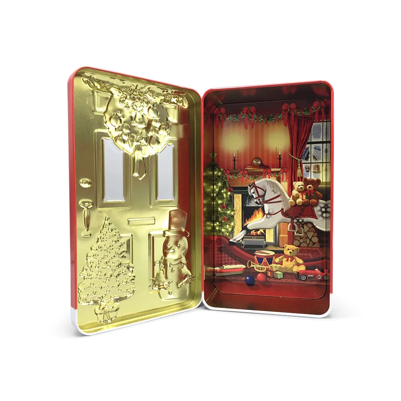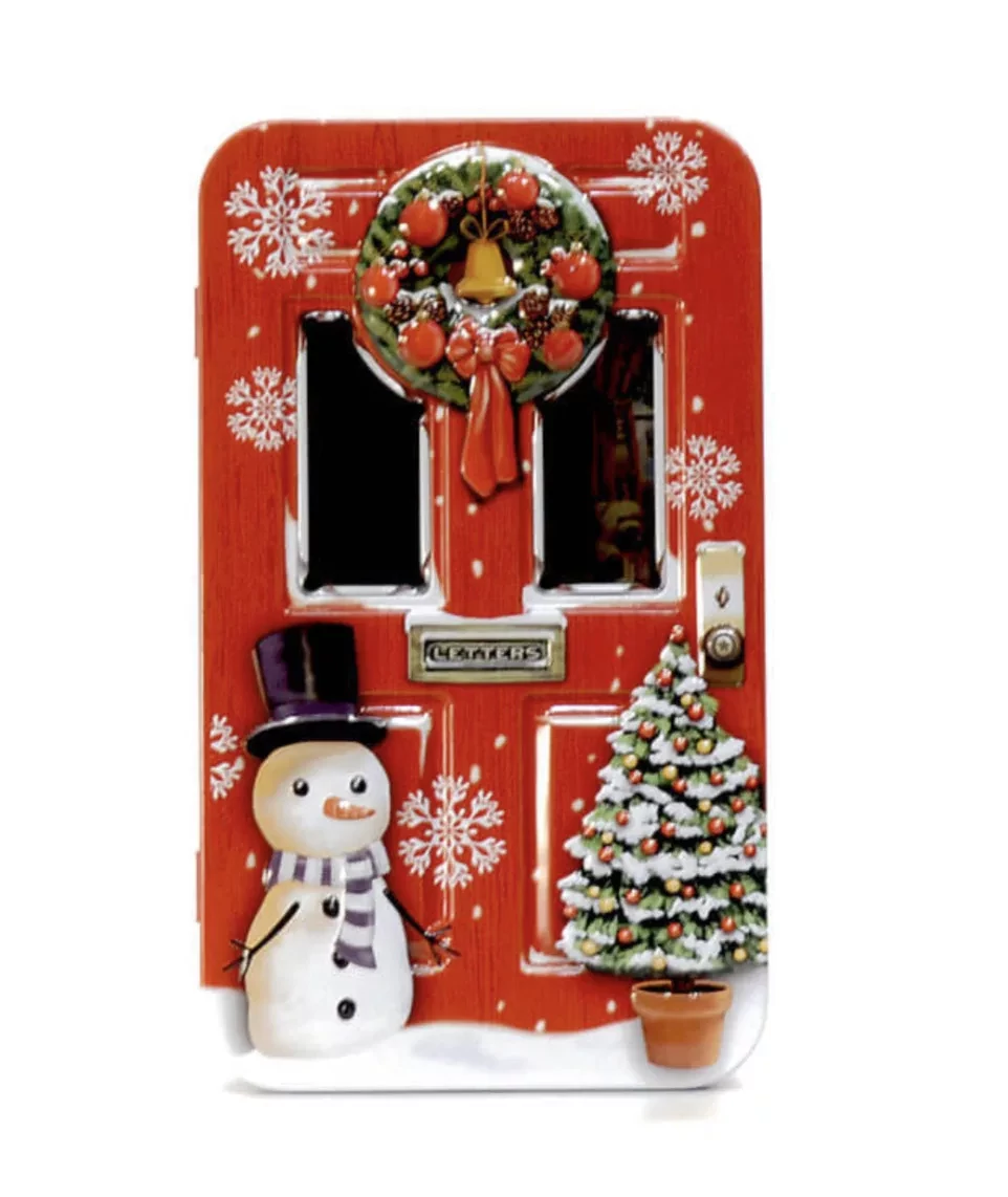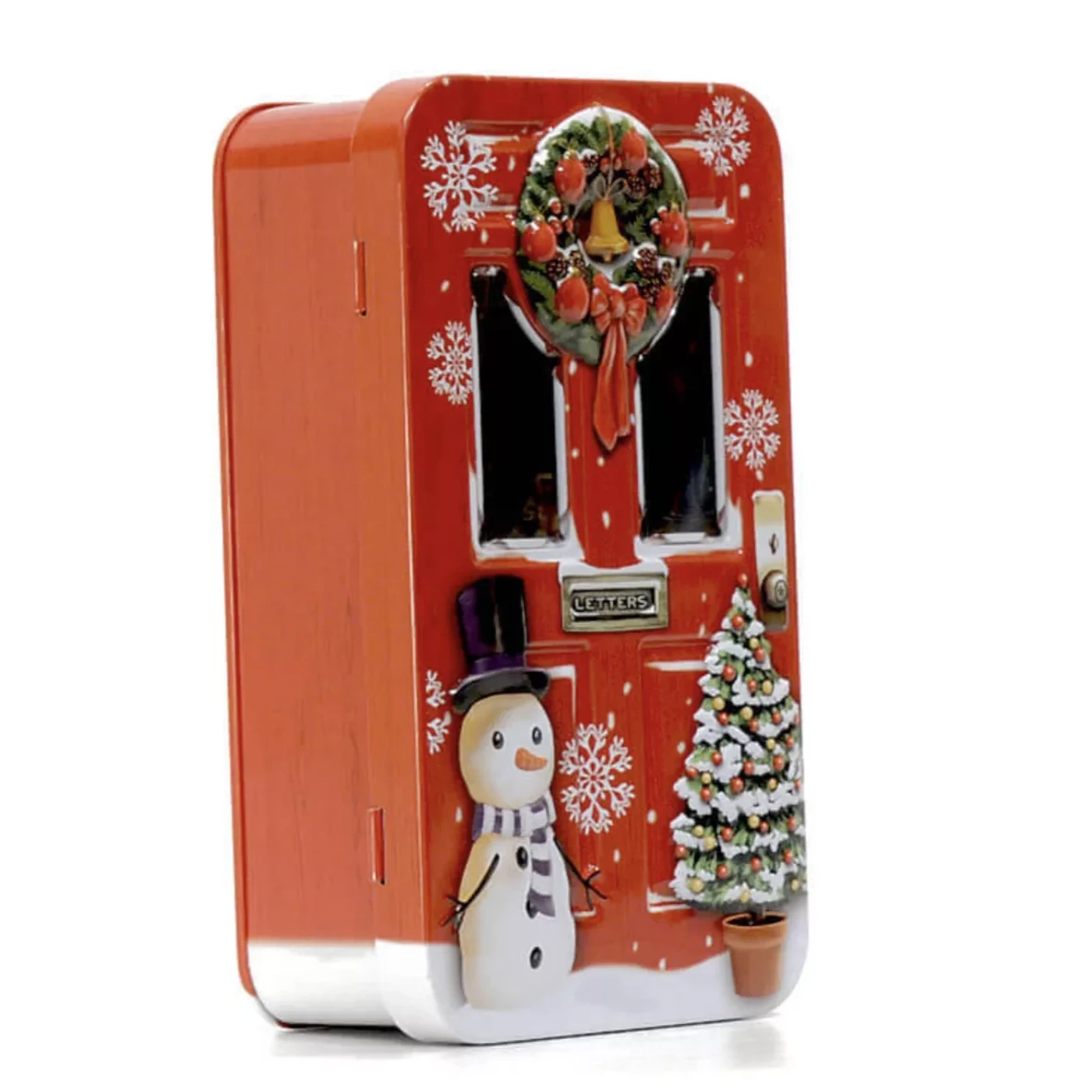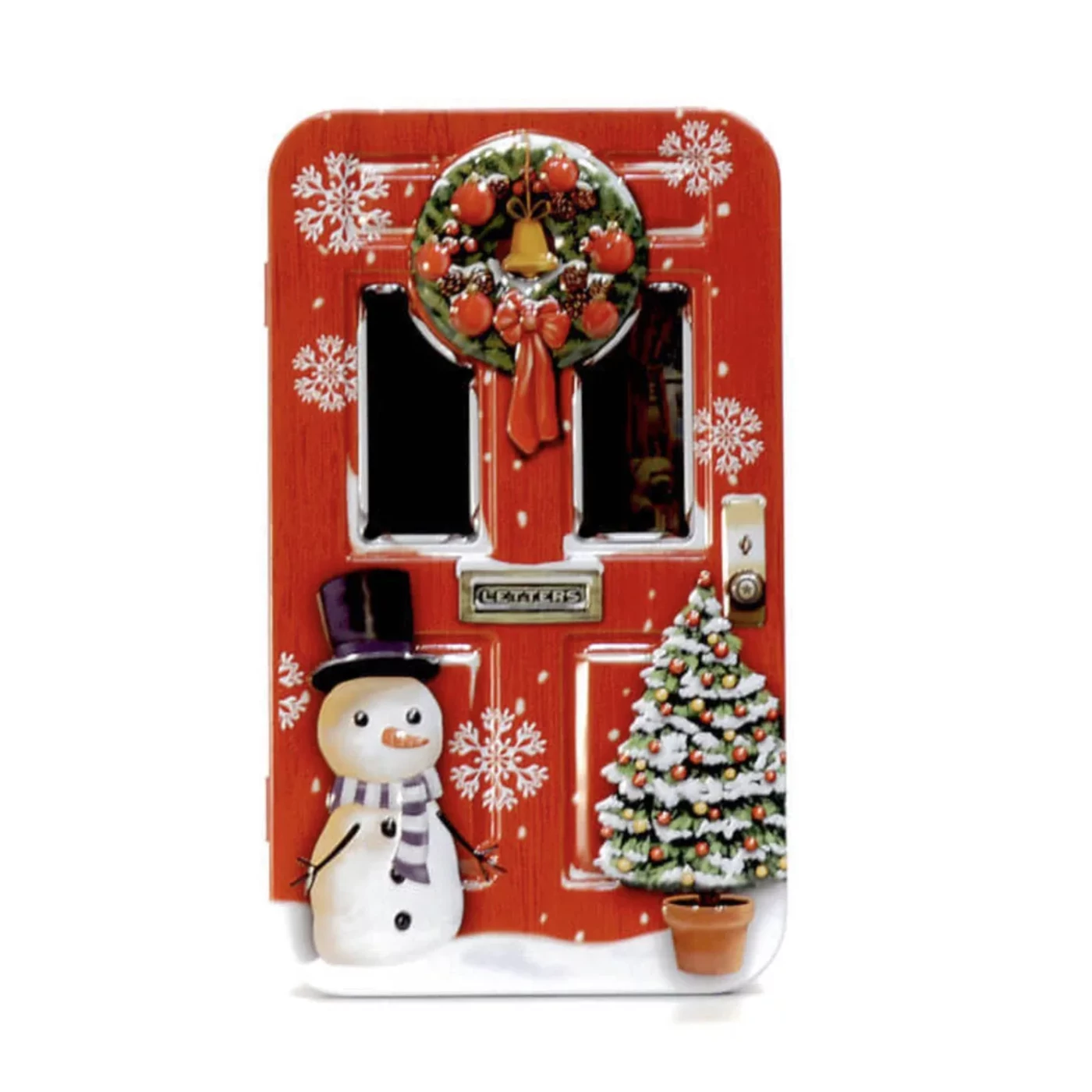 Gondosan megmunkált, ajtó alakú fém doboz, belül karácsonyi szoba mintával. Egyedi kialakítása teszi különlegessé, használható lakásdekorként, de az ajtót kinyitva mindenféle finomságot is belepakolhatunk. A termék élelmiszerbiztos, így az édesség közvetlenül is belekerülhet. Élelmiszerbiztos Jól záródik - a benne elhelyezett finomságok sokáig frissek maradnak
