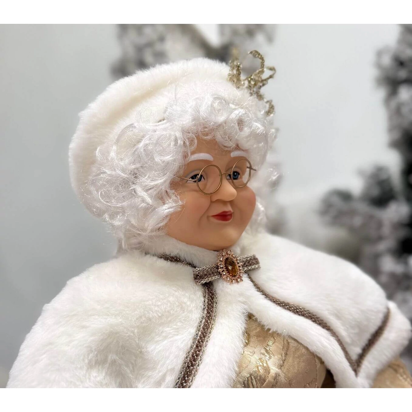 Álló Mikulás asszony a hagyományos karácsonyi színekben. Kedves, részletesen kidolgozott karácsonyi figura, amely otthonát, üzletportálját, kávézóját vagy éttermét díszíti az ünnepek alatt. Kiváló ajándék is, amely elsősorban a gyerekeket örvendezteti meg