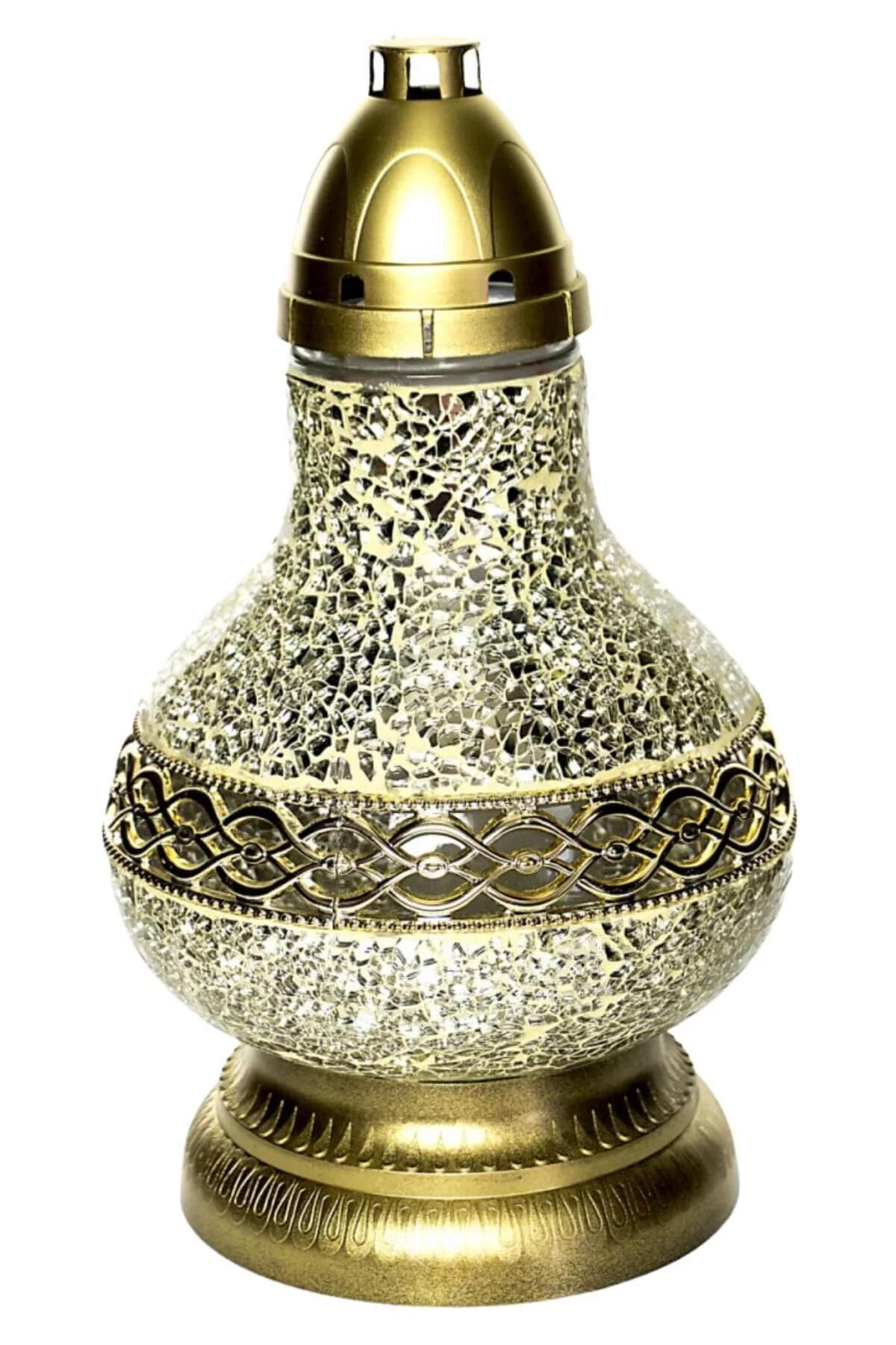 Luxus mécses arany kivitelben, sírdísznek alkalmas.
