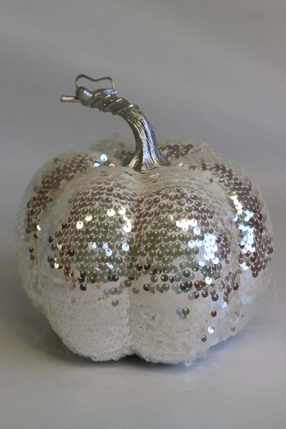 A fehér tök csillámmal egy gyönyörű őszi, de akár karácsonyi dekoráció is lehet.