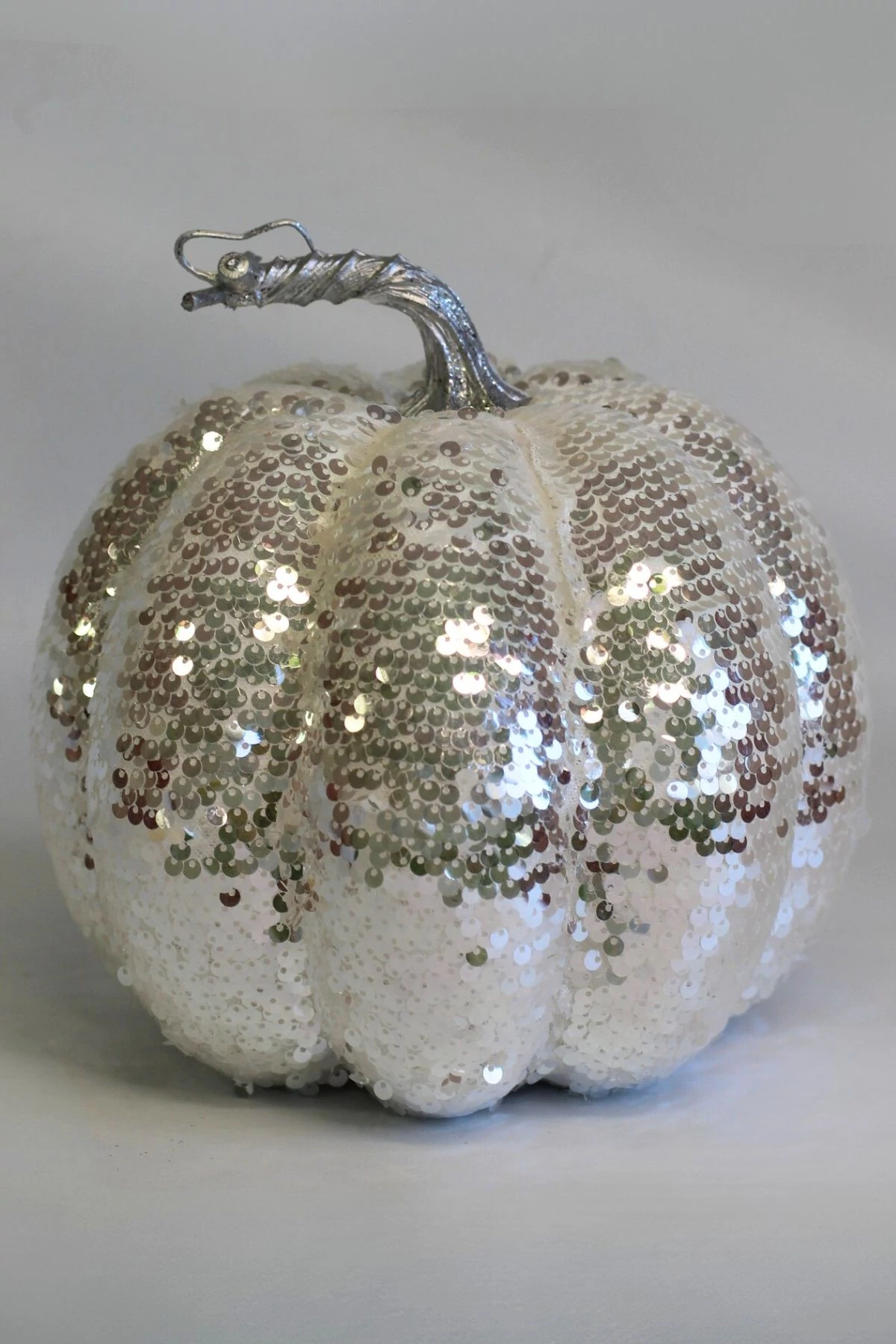 A fehér tök csillámmal egy gyönyörű őszi, de akár karácsonyi dekoráció is lehet.