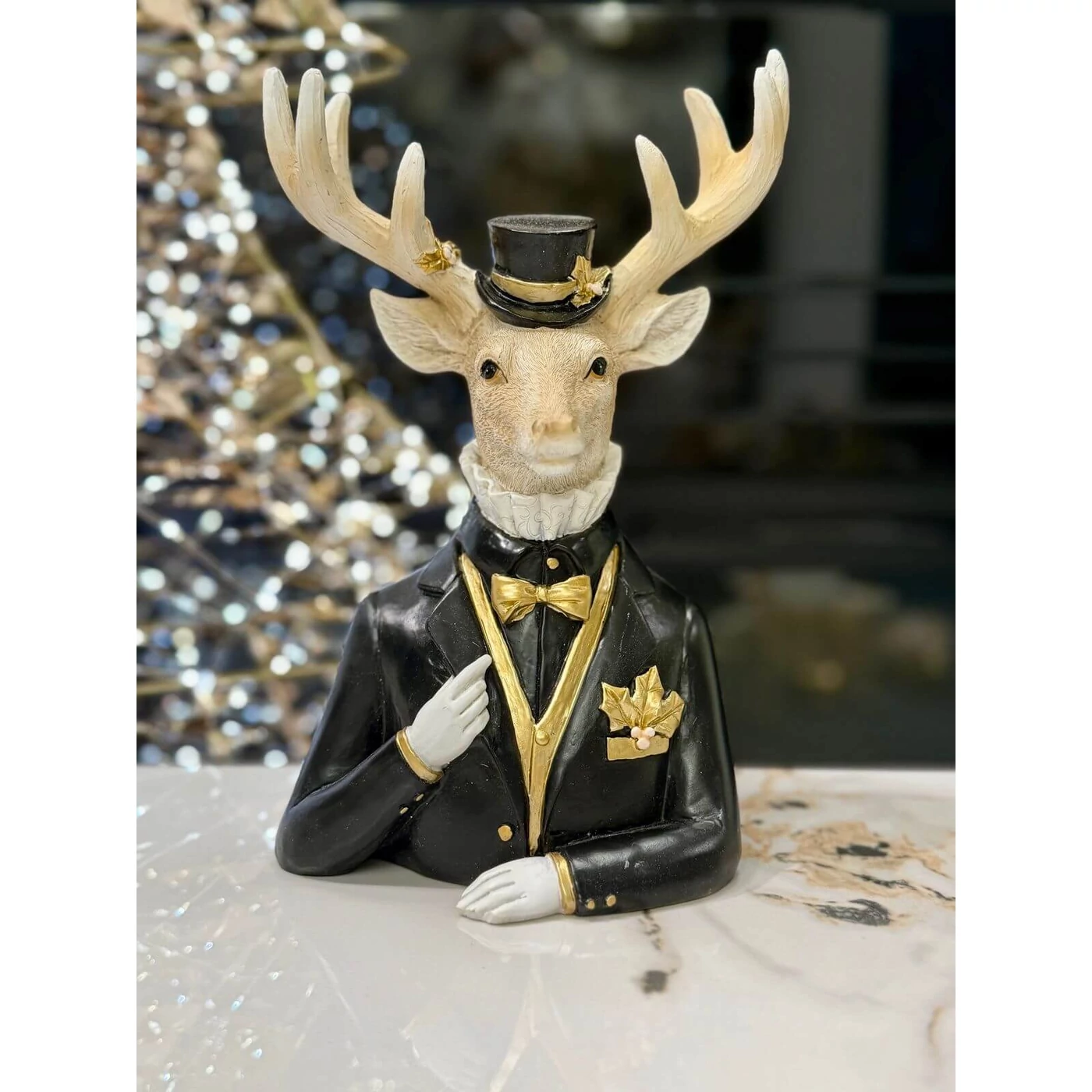 Ez a fényűző szarvas dekorációs figura egész évben használható dekorációként is, és ideális ajándékként is.
