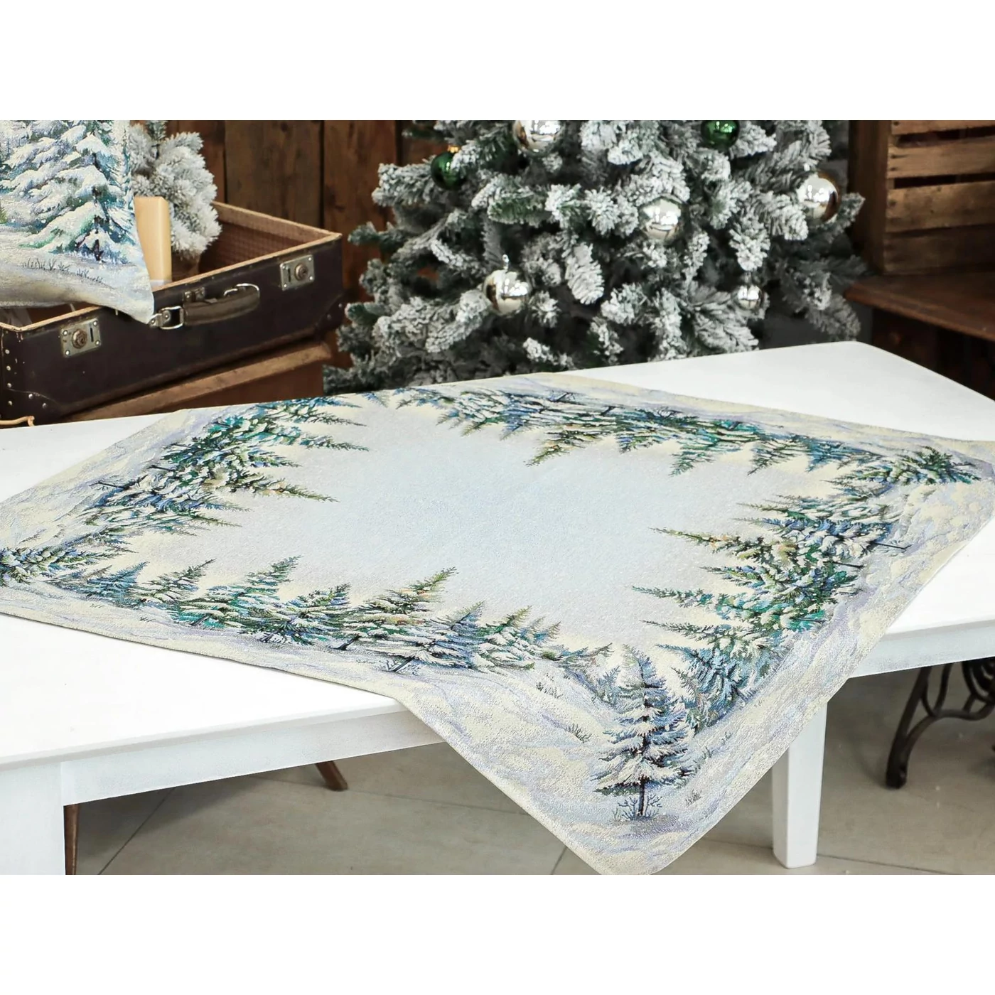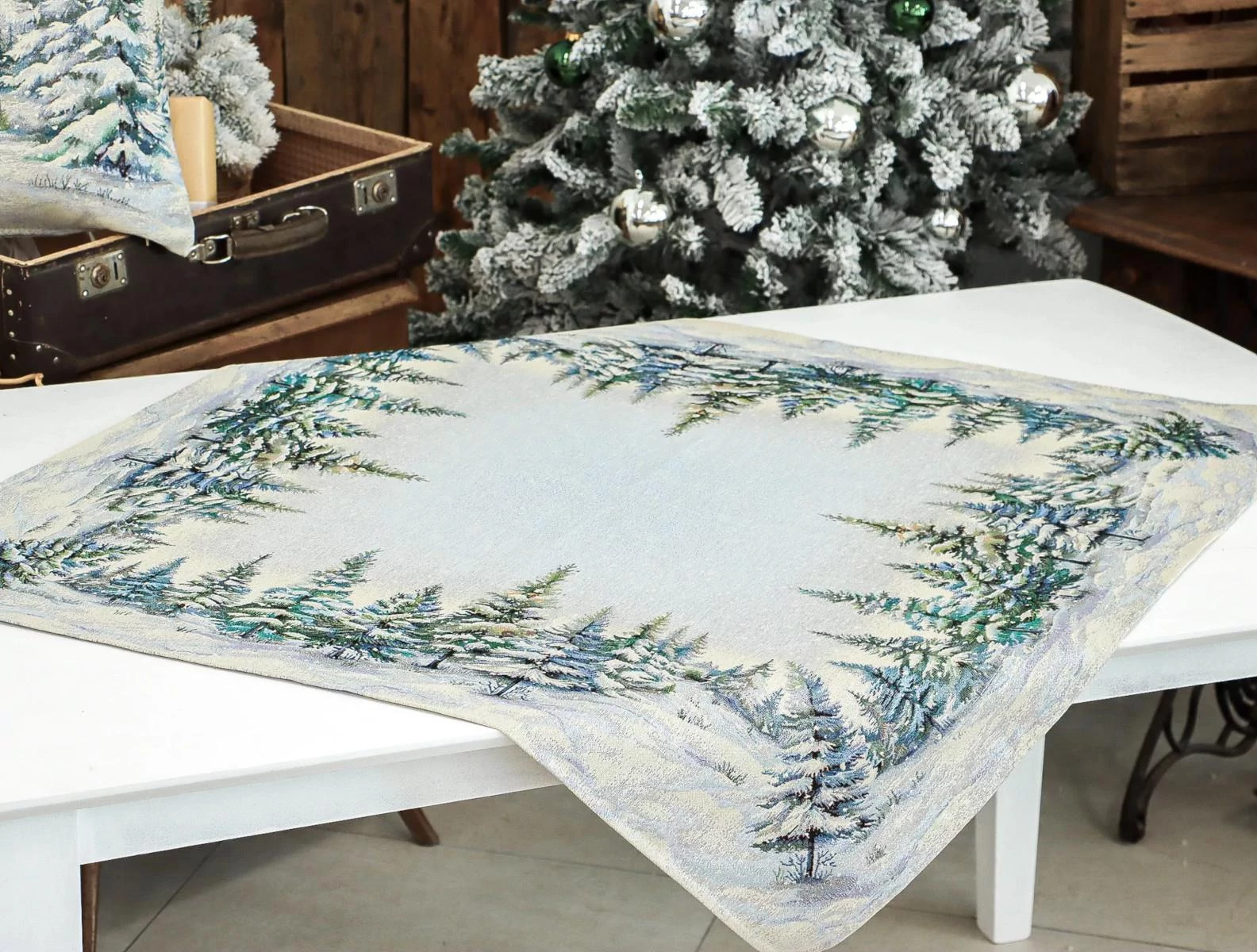 Varázsold ünnepivé az asztalterítést ezzel a különleges terítővel, amelyet fényesen csillogó ezüst lurex szálak tesznek igazán ünnepélyessé. A terítő gyönyörűen megidézi a téli erdők varázsát. A részletgazdag mintán havas fenyőfák és hulló hópelyhek jelennek meg, amelyek meghitt, nyugodt hangulatot teremtenek otthonodban. Használható étkezőasztalon, komódon, dohányzóasztalon vagy ünnepi dekorációként bármely helyiségben.