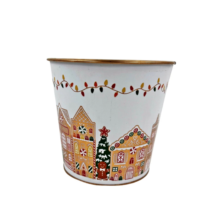 Karácsonyi fém kaspó (13,5 cm x 13,5 cm x 12 cm)