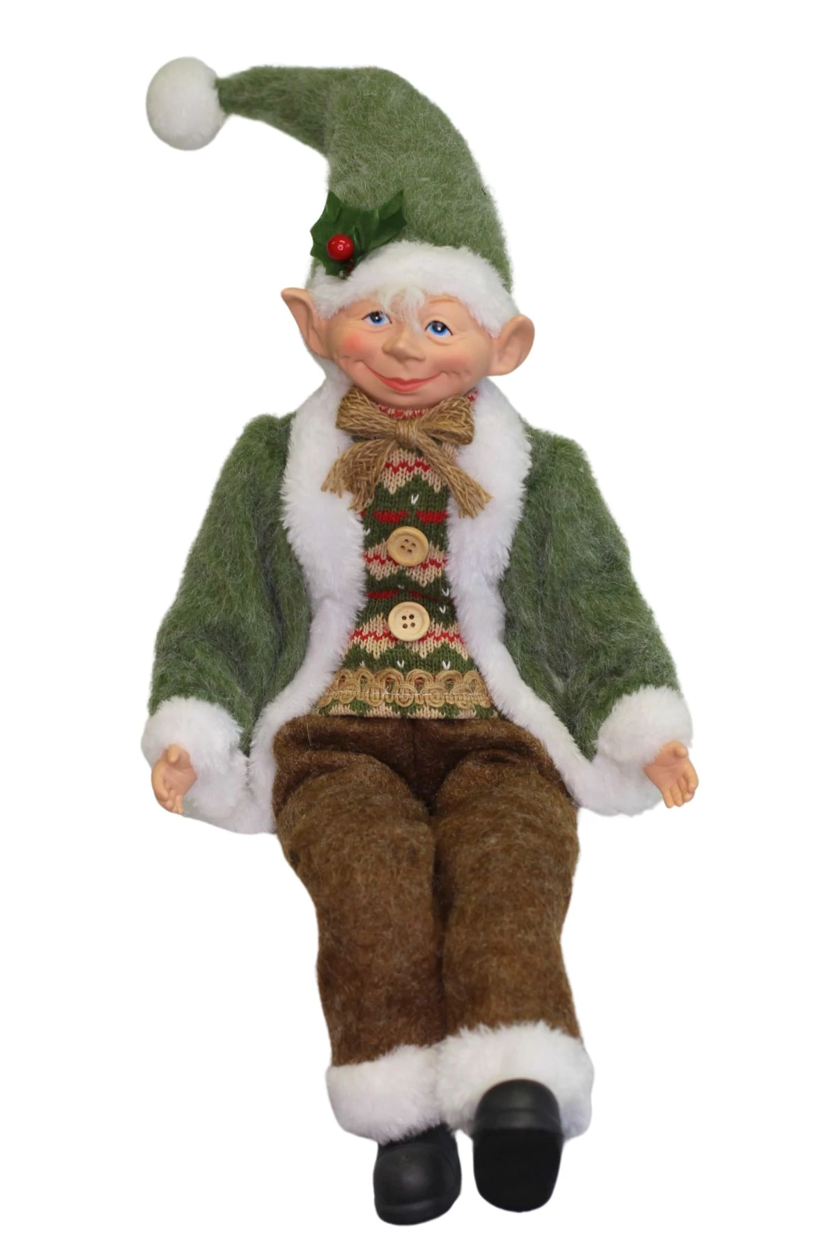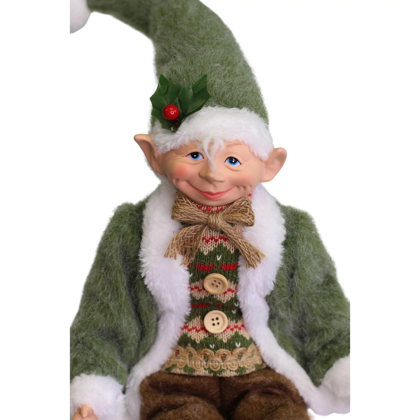 Ülő karácsonyi manó természetes színekben, ideális dekoráció a fára, a gyerekszobába vagy a kandallóra. A figura nagyon aranyos, gondosan megmunkált. Rugalmas, belül dróttal ellátott, így a kívánt pozícióba állítható.