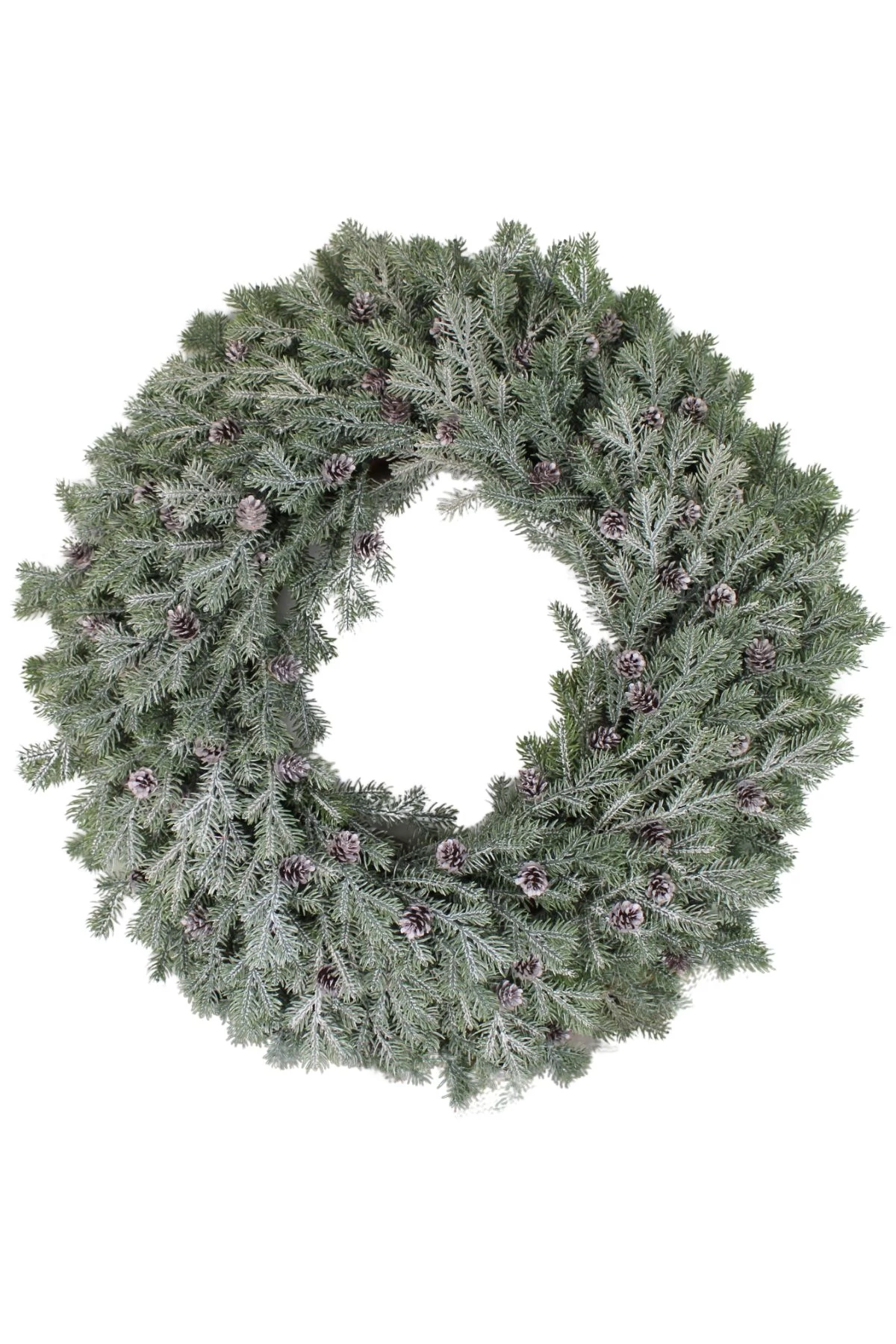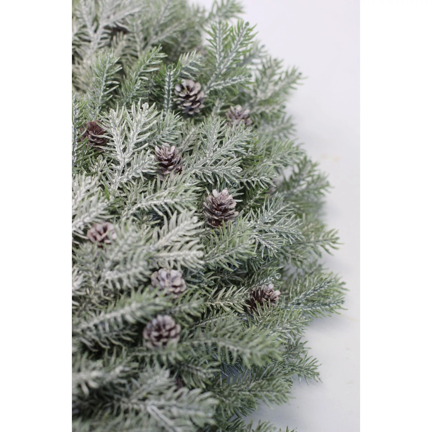 Az 50 cm külső átmérőjű fenyőtobozos karácsonyi koszorú az ajtóra illeszkedik, de adventi koszorúként is használható az asztalon.