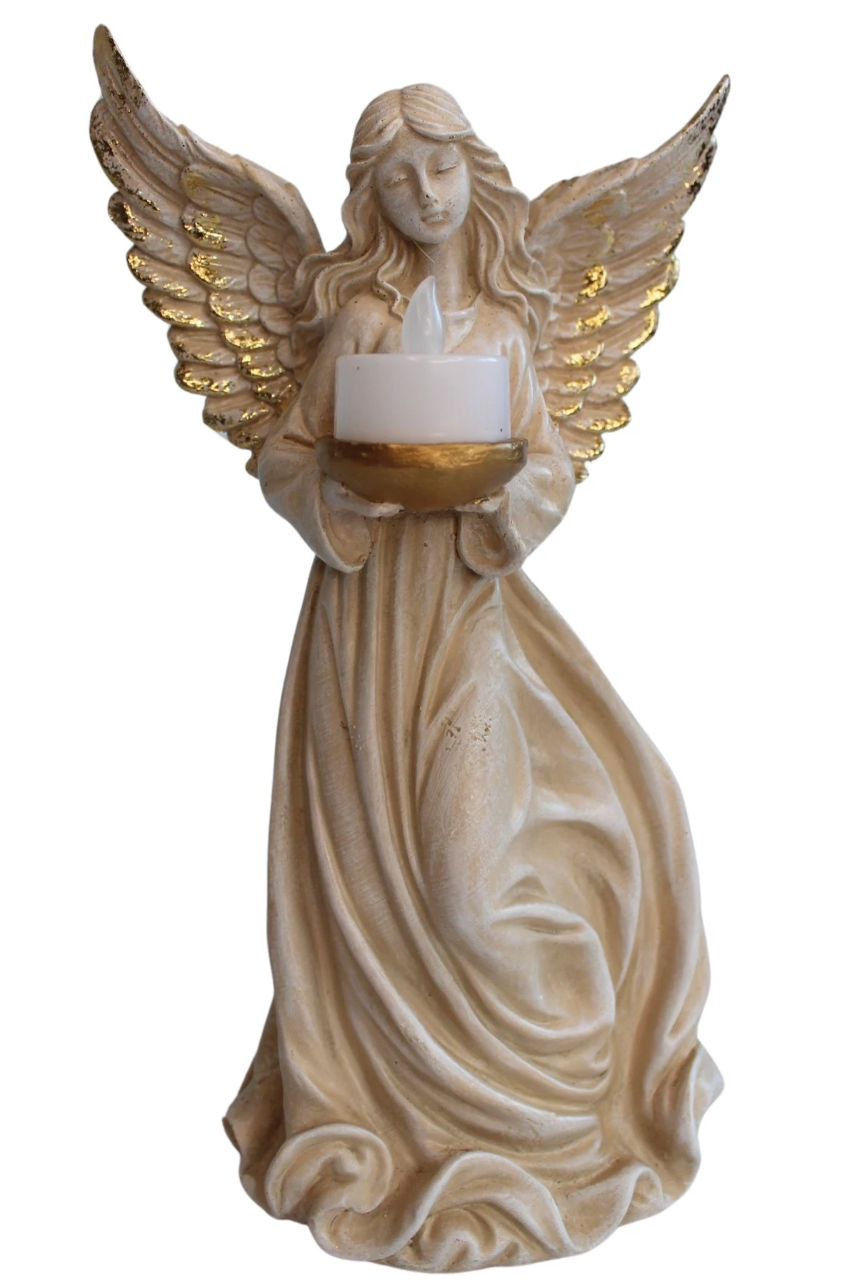 A gyönyörű angyalfigura gyertyával ideális a sír díszítésére.