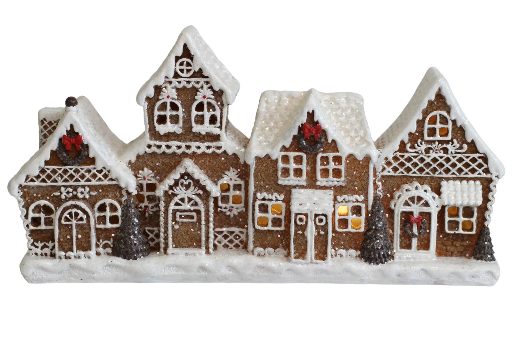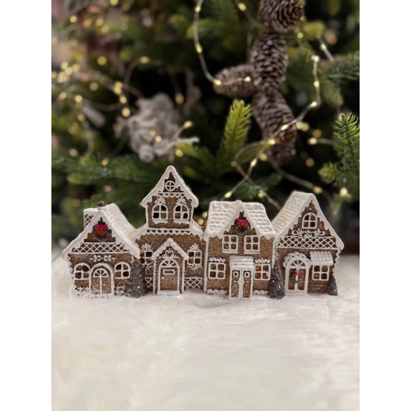 A mézeskalácsfalu LED-es fényekkel egy csodálatos karácsonyi dekoráció, amely varázslatos karácsonyi hangulatot kölcsönöz otthonának.