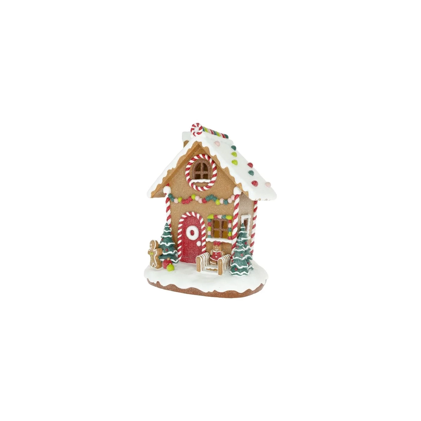 Mézeskalács ház glitteres, LED-es (20 cm x 16,5 cm x 24,5 cm)