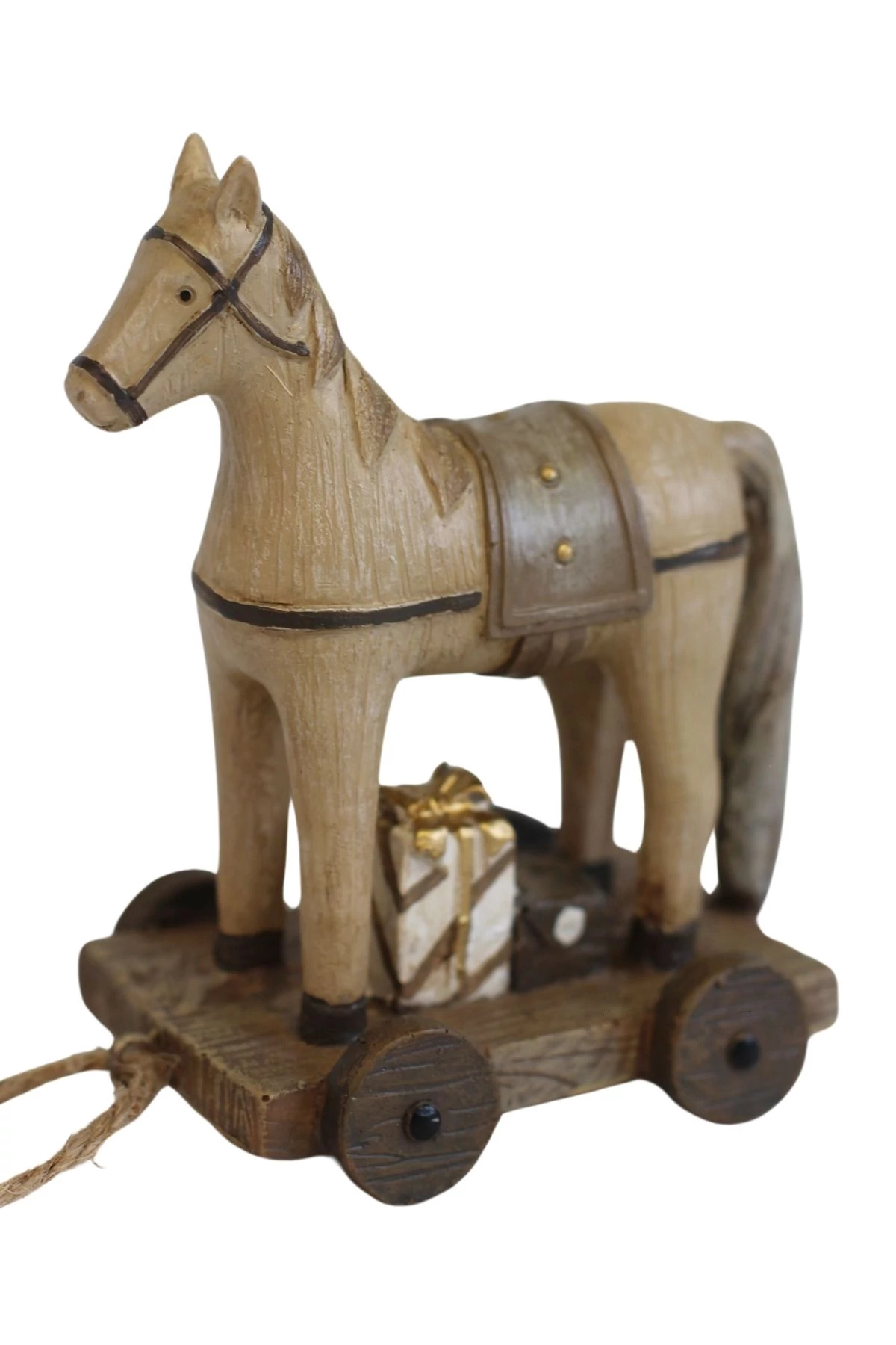 Részletes karácsonyi dekoráció természetes színekben, amely egy ablakba, egy polcra vagy egy ünnepi asztalra helyezhető a karácsonyi dekoráció részeként. Ajándéknak is alkalmas.