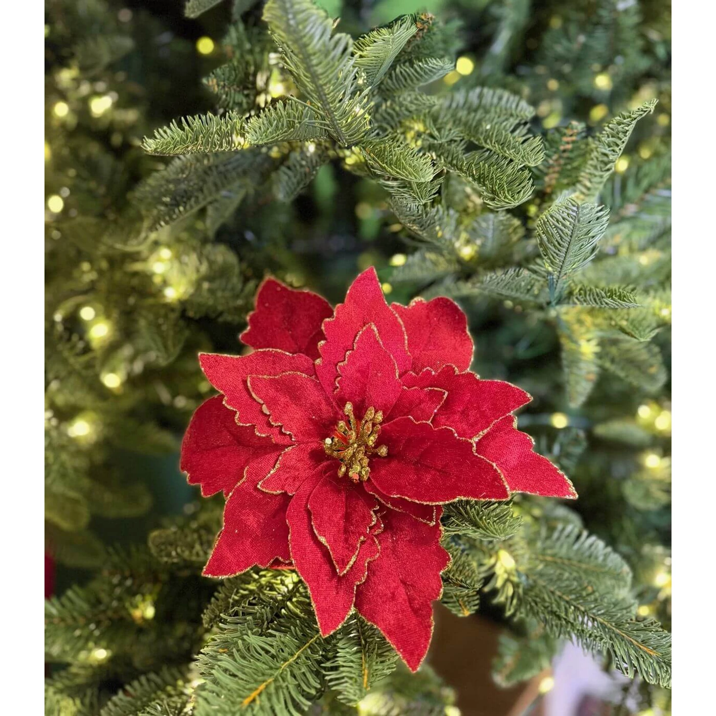 A piros-arany mű mikulásvirág gyönyörű dísz, amely ünnepi hangulatot teremt, és elegáns megjelenést kölcsönöz a karácsonyfának. Alkalmas karácsonyi dekorációs elrendezésekbe és adventi koszorúkba is.