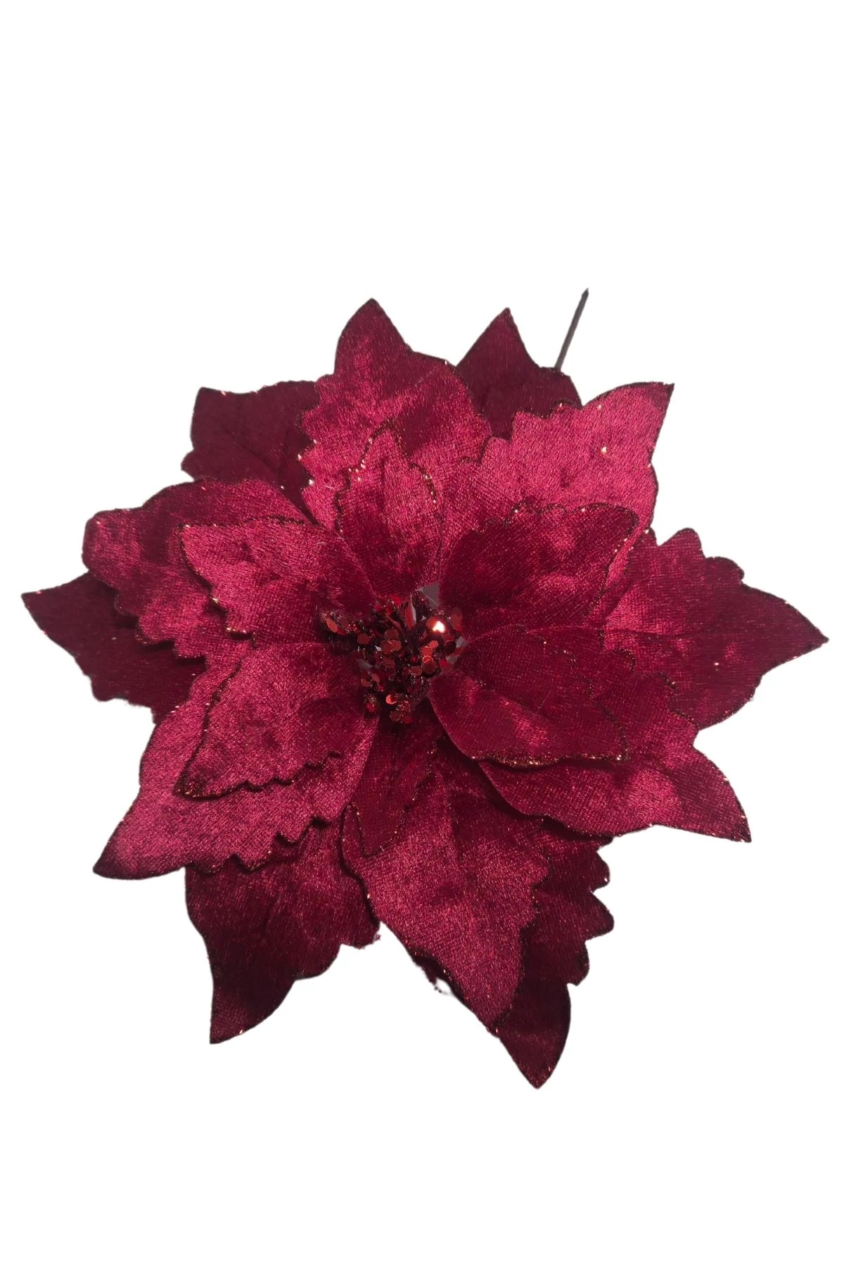 A piros mű mikulásvirág gyönyörű dísz, amely ünnepi hangulatot teremt, és elegáns megjelenést kölcsönöz a karácsonyfának. Alkalmas karácsonyi dekorációs elrendezésekbe és adventi koszorúkba is.