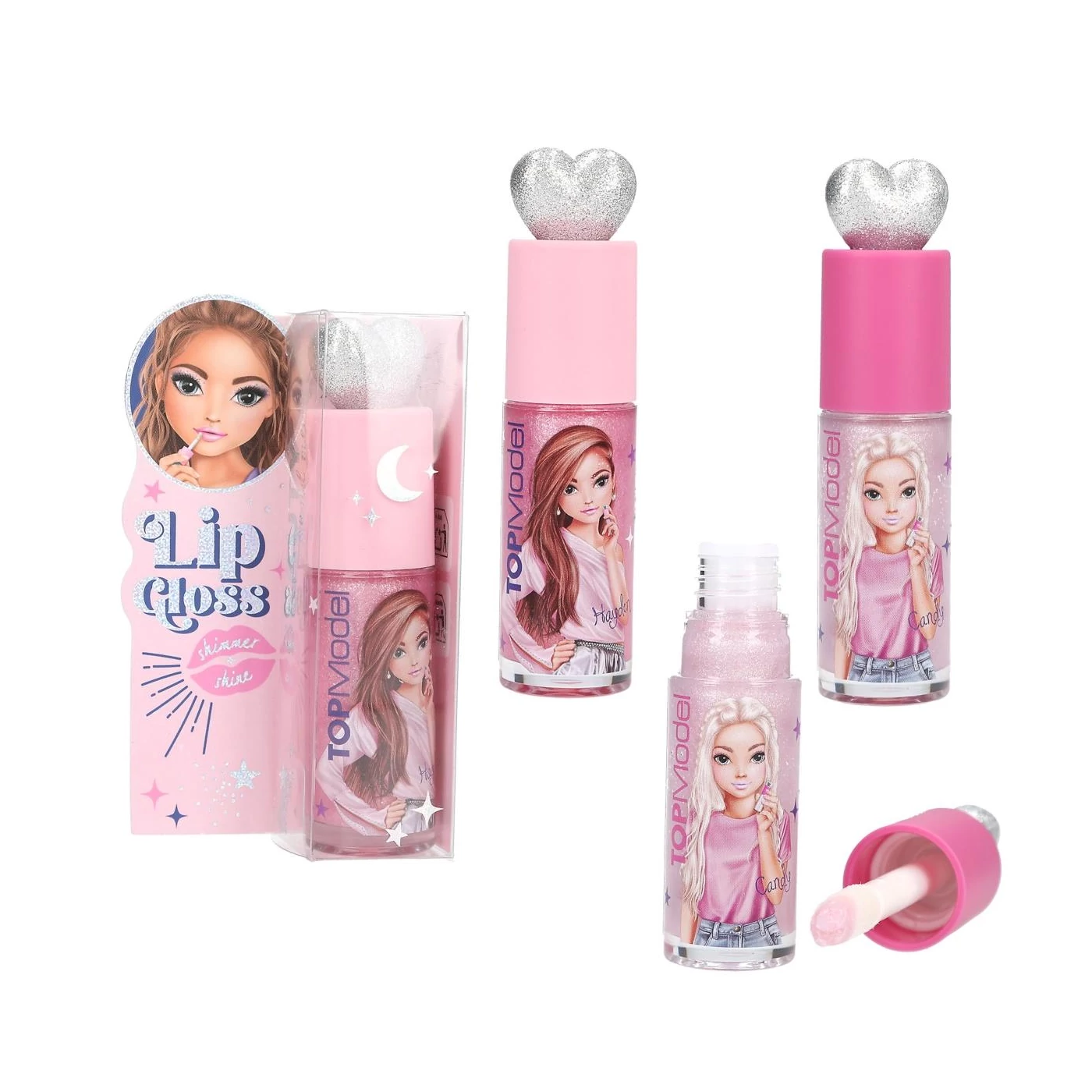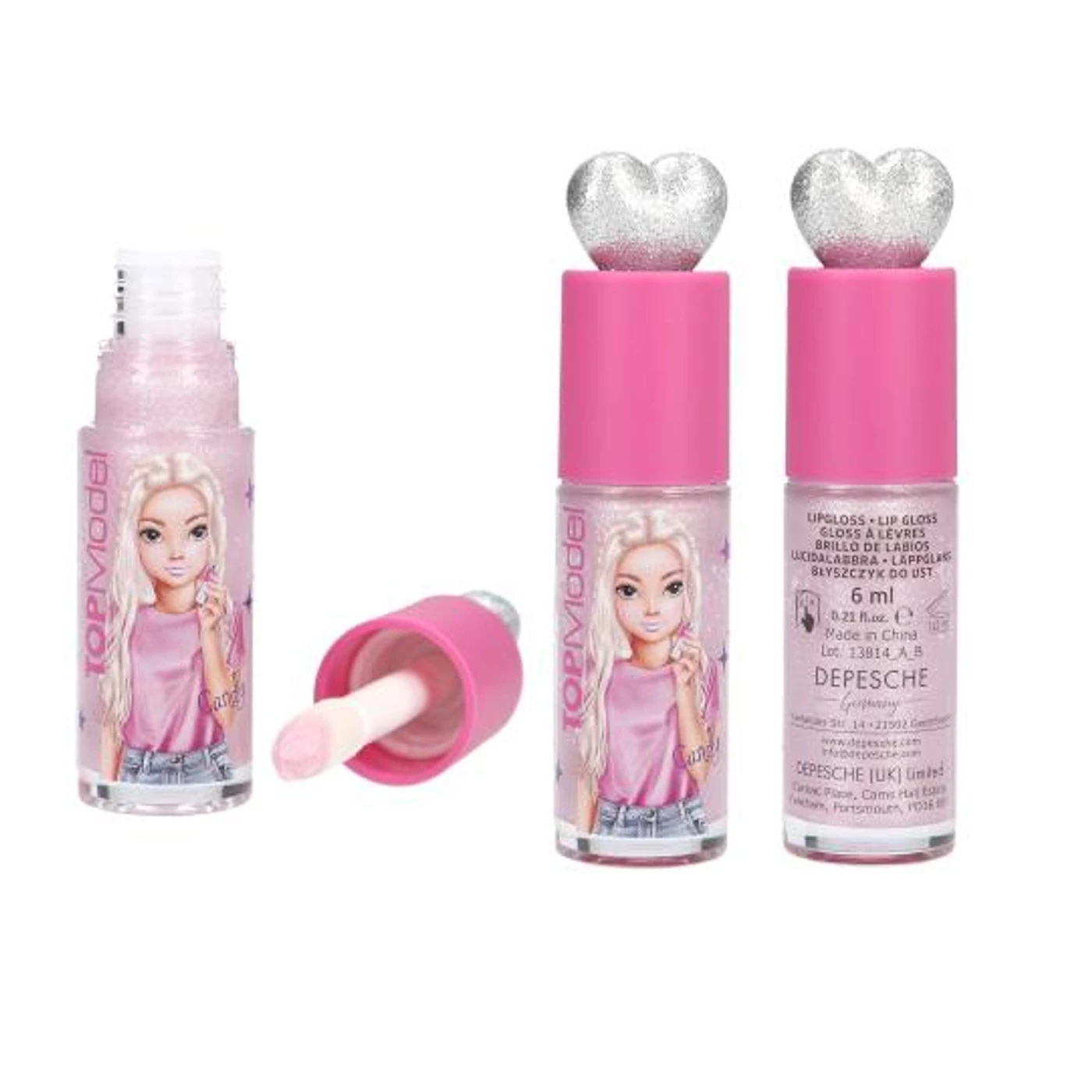 Túl aranyos! Ez a TOPModel fényes két különböző színben kapható: forró rózsaszín és rózsaszín (illatok: mályvacukor és málna). Mindkettőnek ezüst és csillogó szív alakú hegye van, és kihagyják a gyönyörű próbababa motívumokat az üvegről. A fényesség gyönyörű fényt kölcsönöz az ajkaknak. Űrtartalom: 6 ml palackonként.