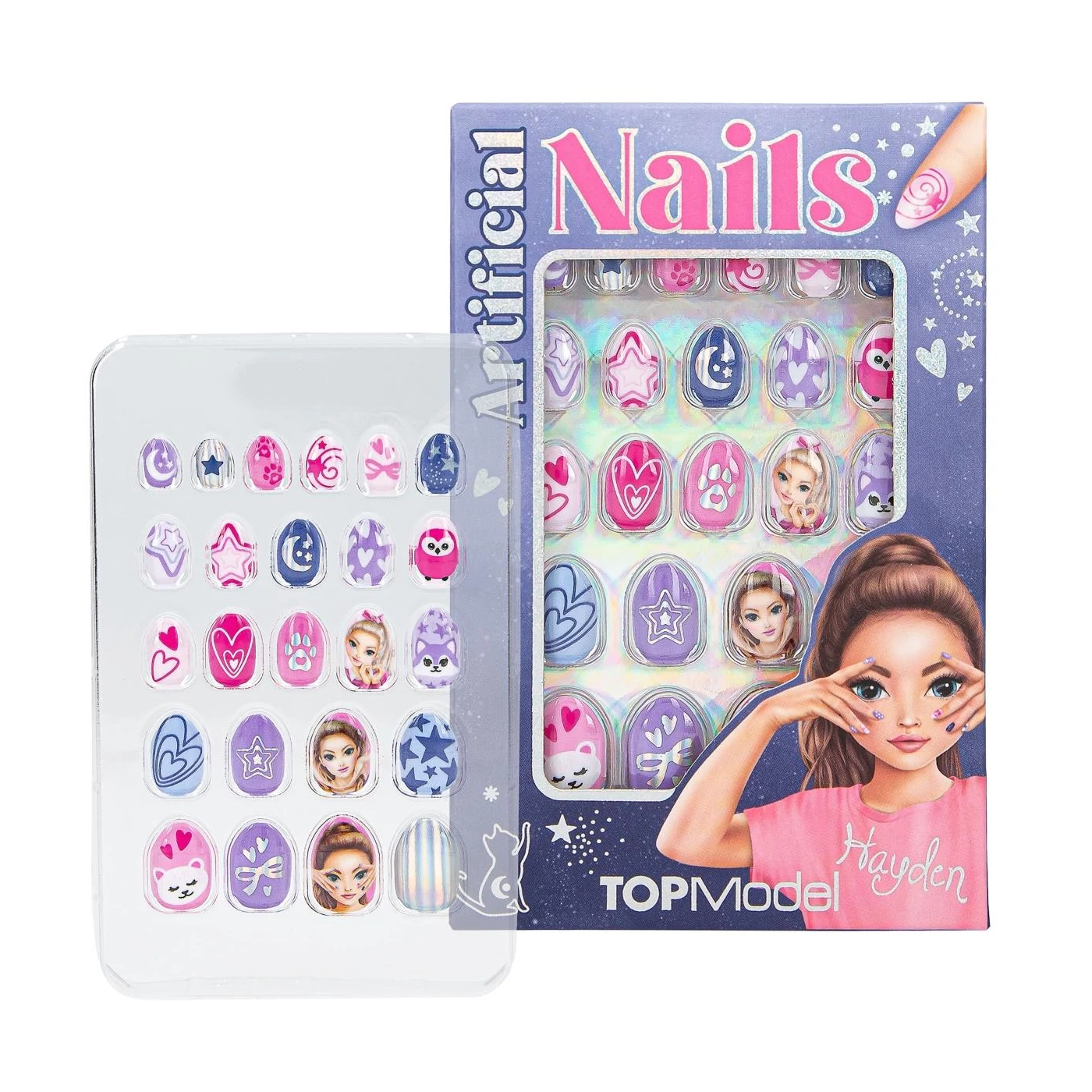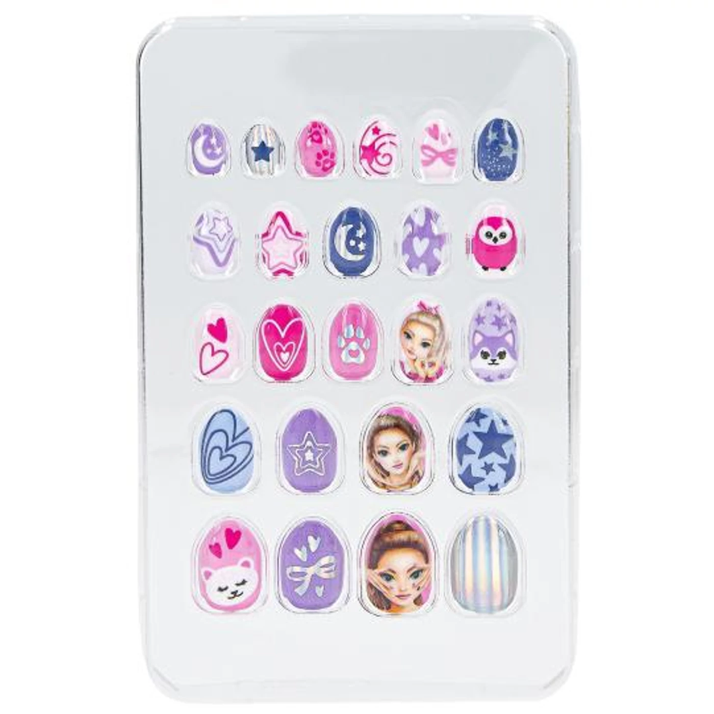 Stílusos kezekért: Ez a 24 darab öntapadó műkörömből álló készlet a TOPModel-től igazi szemet gyönyörködtető. A körmök enyhén elkeskenyedtek, némelyik csillámmal van befejezve, és a rózsaszín és a lila sok árnyalatában ragyog. Nagyszerű mintákkal és motívumokkal. Praktikus: a körmök vízzel könnyen eltávolíthatók.