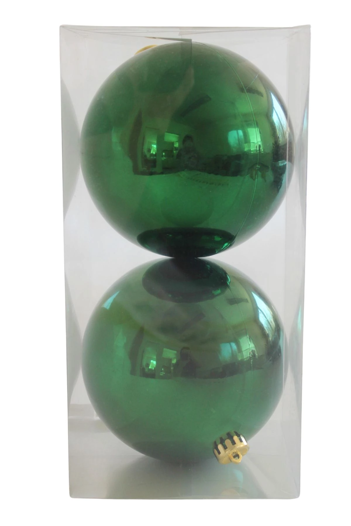 A hagyományos zöld színű műanyag gömbök alkalmasak a karácsonyfára akasztásra vagy karácsonyi díszek és koszorúk díszítésére